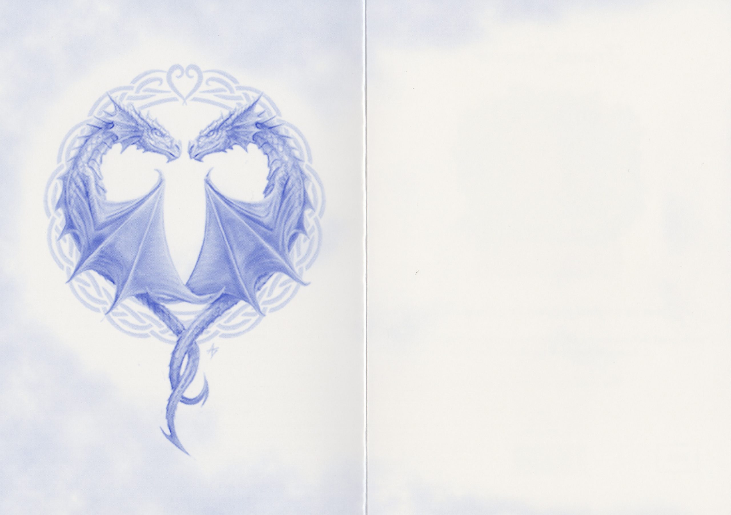 This card measures approximately 121 x 171mm. It is produced on recycled paper, using vegetable based inks. The artwork is by British fantasy artist Anne Stokes; the card comes with a stunningly decorated envelope, and is blank for your own message.